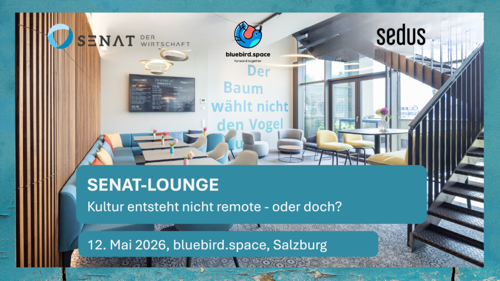 Als bluebird.space freuen wir uns sehr, Gastgeber für diese Veranstaltung vom SENAT DER WIRTSCHAFT zu sein.
